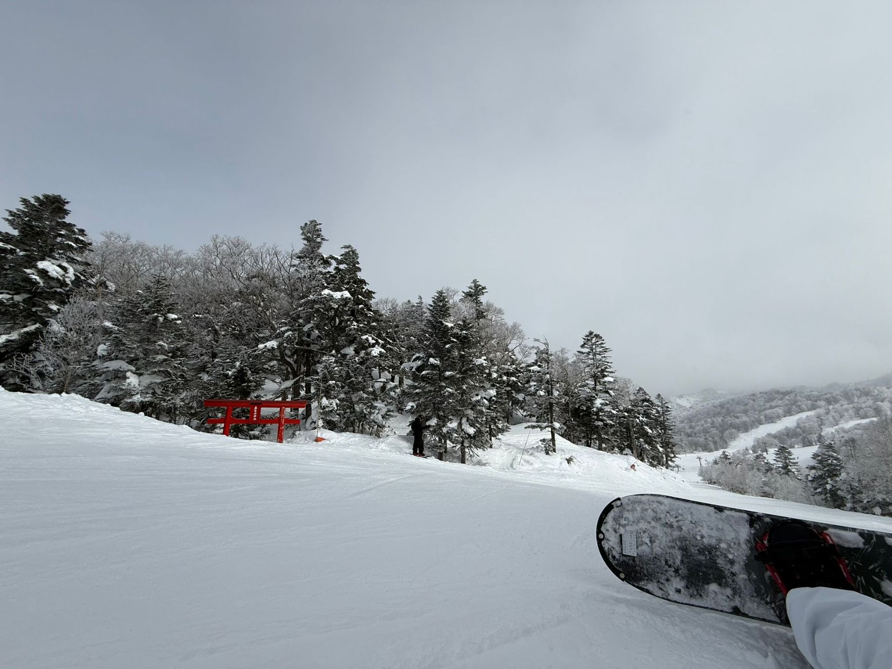 The hotel and staff was incredibly kind with a wonderful onsen. This was my second time on the Myoko trip, and on both occasions, Saturday night featured a special event at a nearby hotel. The slopes offer something for everyone, beginners and more advanced riders, and if you have a good eye, you might even spot a shrine on the slopes! The trip was in March and the resort was quite quiet, making some runs incredibly majestic.