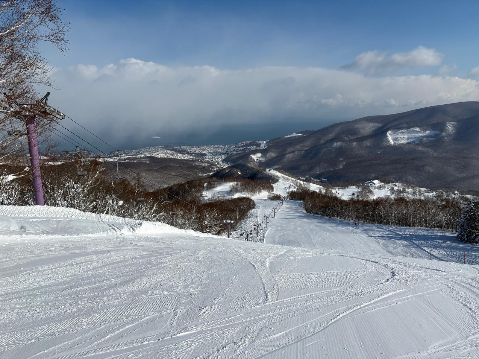 The hotel and staff was incredibly kind with a wonderful onsen. This was my second time on the Myoko trip, and on both occasions, Saturday night featured a special event at a nearby hotel. The slopes offer something for everyone, beginners and more advanced riders, and if you have a good eye, you might even spot a shrine on the slopes! The trip was in March and the resort was quite quiet, making some runs incredibly majestic.